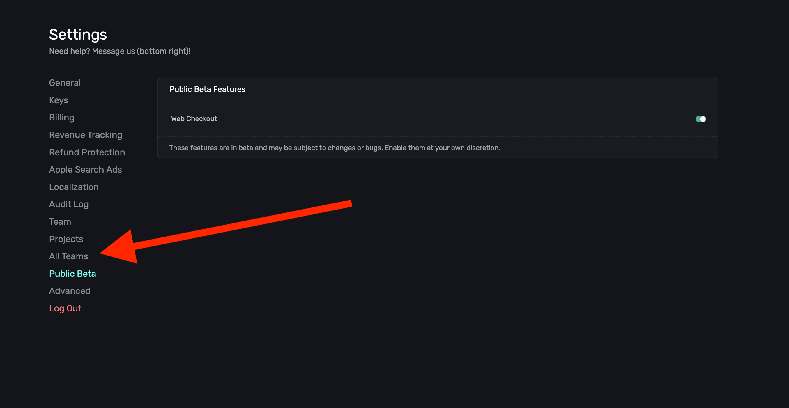 In the All Teams section within Settings, you can easily view each team that's part of your Superwall account: