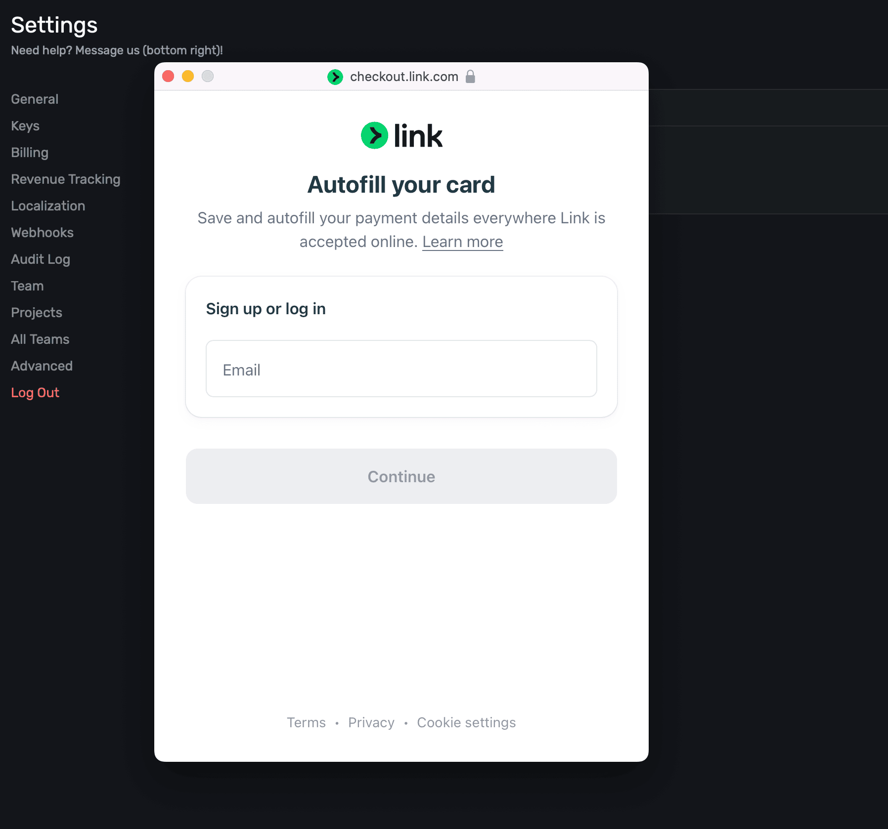 In the Billing section in Settings, you can enter, or change, billing details for your Superwall account: