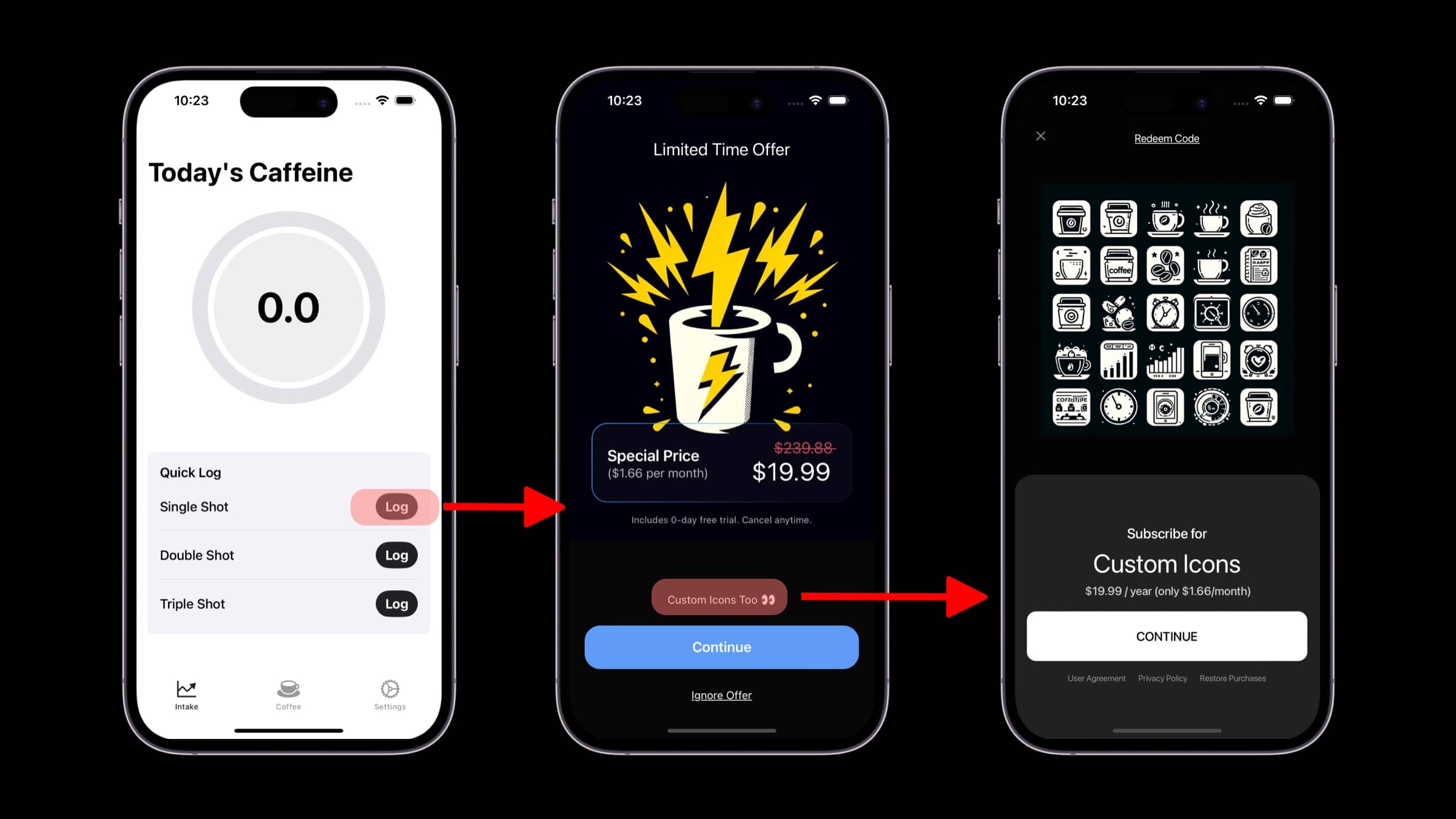 - The current paywall dismisses, and then presents the icons-centric paywall.