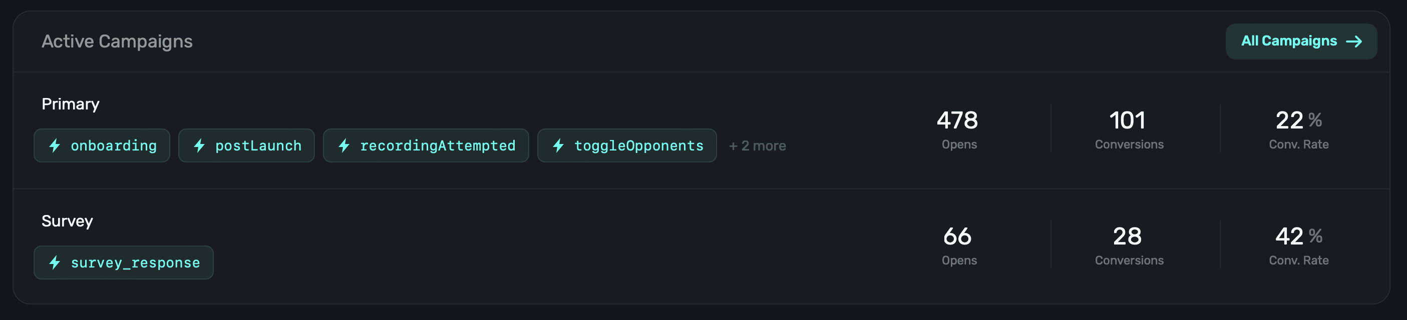 For each campaign, Superwall will show: