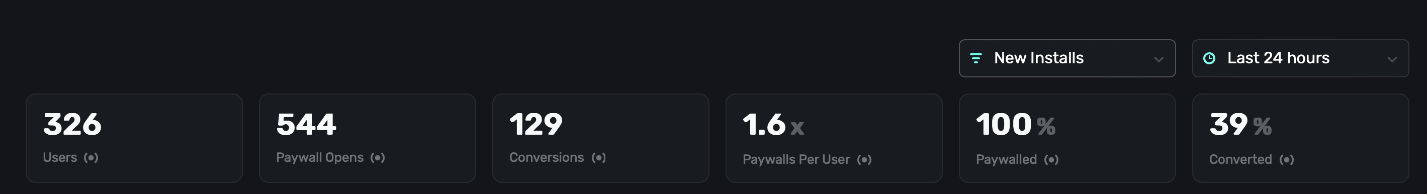 • New Installs: Represents users who installed your app within the selected time frame.