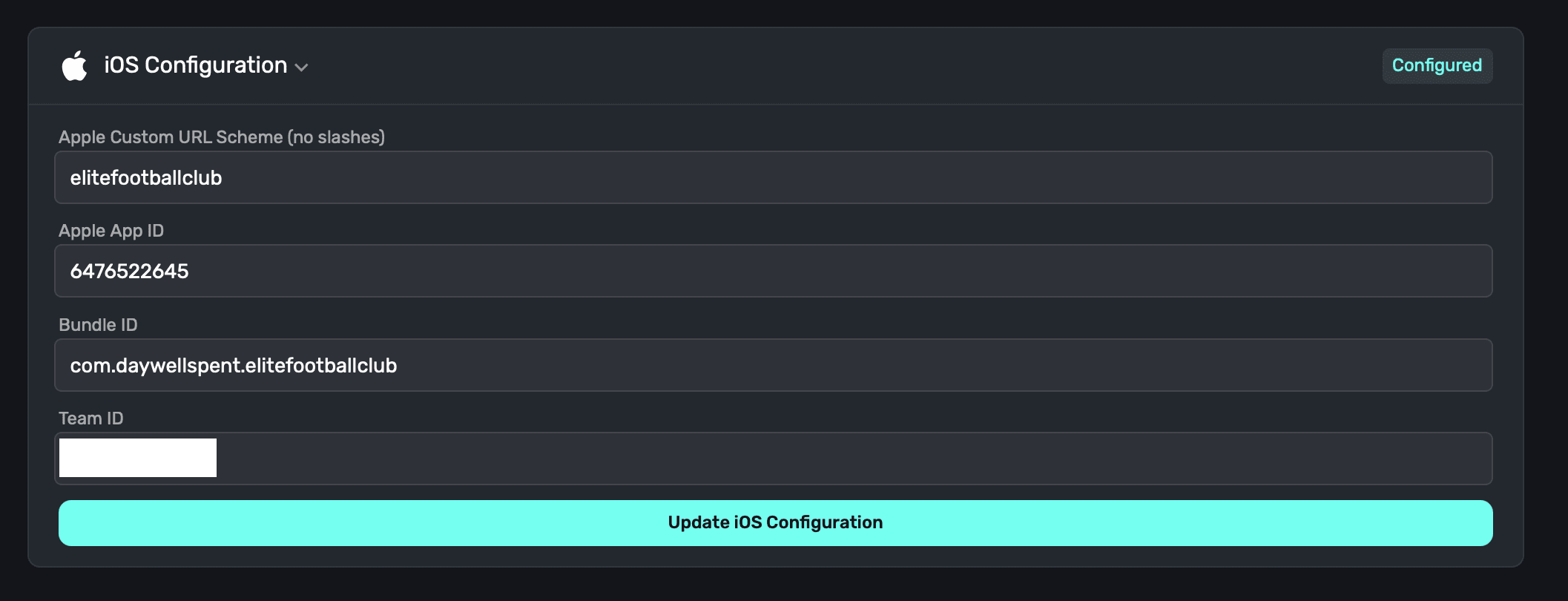 - Apple Custom URL Scheme: Add your app's custom URL scheme. If you haven't set on up, read here for instructions.